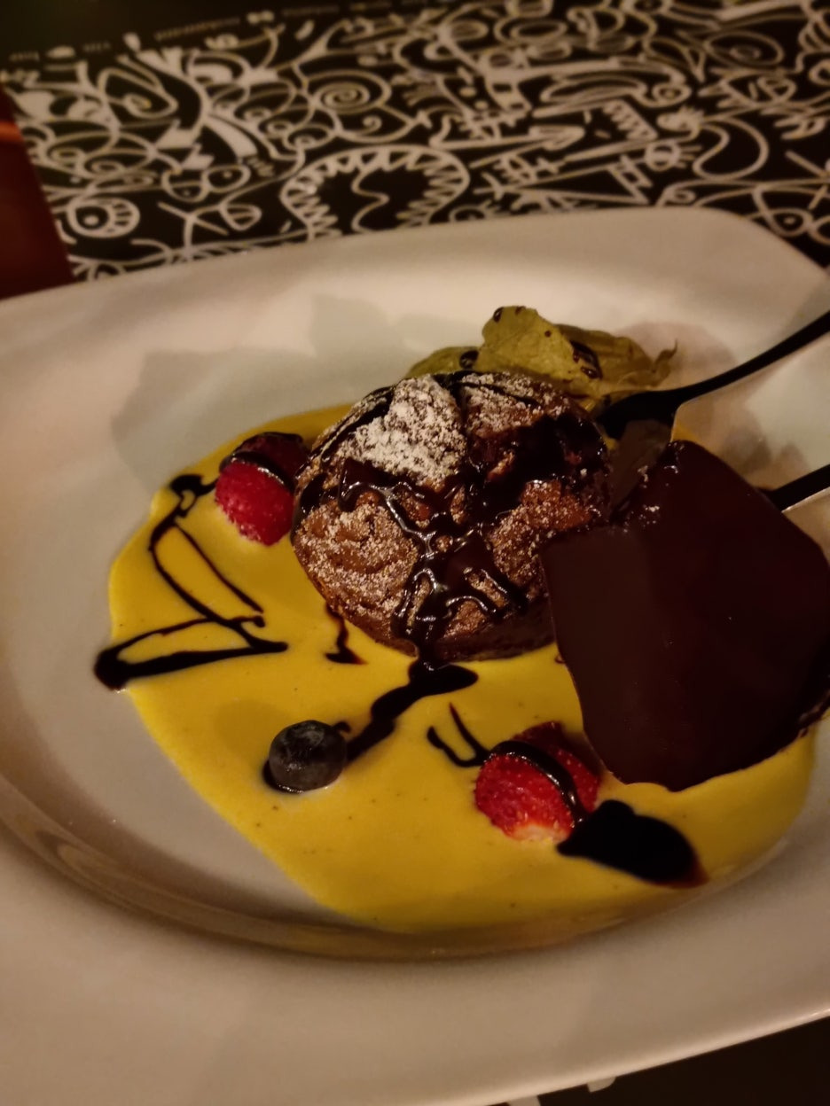 Pasta, lamb chops, and a chocolate muffin for dessert—everything was spot on😋