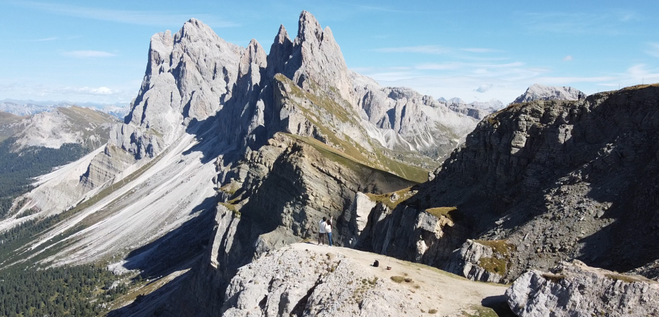 We took the first cable car from Ortisei to Furnes, then hopped onto another up to Seceda.